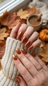 16. Pumpkin Spice Chrome Nails