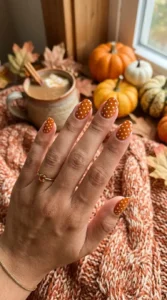 19. Pumpkin Spice Polka Dot Nails